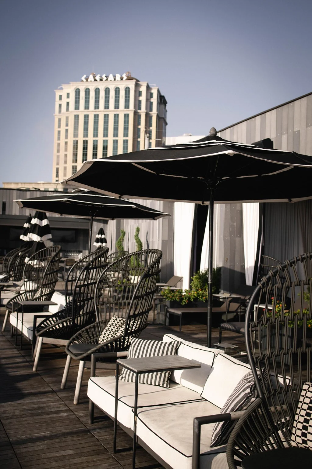 I was pleasantly surprised by the pool. Most city hotels have a generic pool, but Four Season New Orleans created an oasis on their property. It truly feels like you're in a resort once you’re up there. There’s an outdoor bar and cabanas, and I enjoyed the black-and-white umbrella decor. I also really loved the pool beds right on the edge of the pool. The view is gorgeous, and the best part is that the pool is heated, so you can use it year-round. We were there in December and really enjoyed our time in the pool.